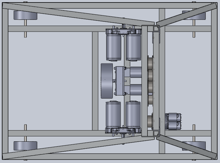 This post is long overdue, and concerns a fundamental aspect of our 2011 design. You probably saw the post with the octagonal frame, and may have fallen a bit in love with it as we did. However, we are sad to say that it has been abandoned in favor of a larger, rectangular frame. The rationale was that while the octagon provided some higher maneuverability and style points, it limited space for components and threatened instability due to a high CG and a small wheel base. The rectangular base allows us to put the wheels in the corners (adding a fifth one sideways in the center in a layout known as "Slide Drive") and keep control components much lower. Despite our (somewhat irrational) attachment to the octagon, we are happy with this decision. Here is the new design: