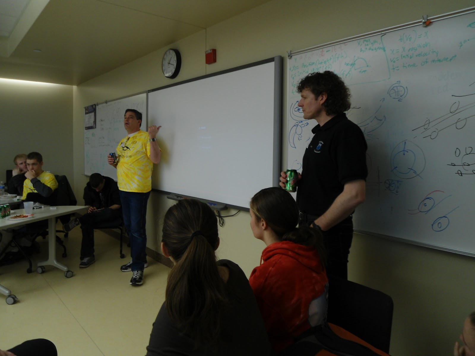 The other subject of debate has been the drivetrain. We still don't have any clear idea of where we're going with that, but we ruled out slide drive, tread drive, and "jump drive". Tank drive is looking very feasible this year since we would like to have a rotating turret on top to target the hoops. Due to that, the robot base itself shouldn't have to be quite so maneuverable. And with some good driving practice (please!) inaccuracy shouldn't be a huge issue anyway.